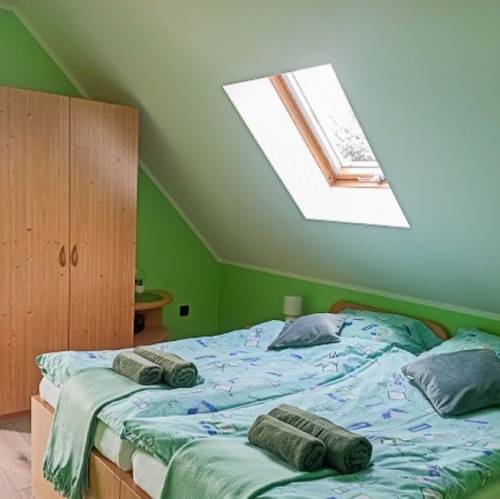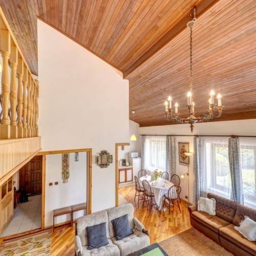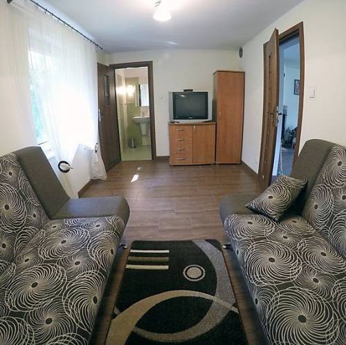 Lgota, PoloniaCasa unifamiliar "Lgota", bonita, rodeada de árboles y prados. En la periferia, lugar tranquilo, soleado, junto al bosque, en el campo. Comunitario: terreno 5'000 m2 (vallado), jardín bonito plantas y flores, terreno con árboles frutales, estanque. Privado: terraza (20 m2), muebles de jardín, barbacoa, lugar para hoguera (columpio). En el inmueble: lavadora. Acceso hasta la casa. Aparcamiento junto a la casa en el mismo terreno. Tienda 500 m, supermercado 10 km, restaurante 10 km, parada de autobús 500 m, piscina 10 km. Atracciones en los alrededores: Wadowice 10 km, Inwałd 18 km, Oświęcim 37 km, Kraków 35 km, Zakopane 105 km. A tener en cuenta: adecuado para familias. En el mismo terreno hay una pequeña casa de vacaciones del propietario. Parte del terreno hay viveros, limitados por verjas de alambres. Los clientes pueden pescar y utilizar el huerto. Casa 4 estancias 100 m2 en 2 plantas. Con mobiliario bonito y agradable: salón-comedor abierto con 1 sofá-cama, chimenea y TV satélite. Salida al jardín. Cocina abierta (4 fogones, horno, microondas, cafetera eléctrica). Baño/WC. Planta superior: 1 dorm. 8 m2, abuhardillado orientación norte con 2 camas (90 cm, 200 cm de longitud), radio. 2 dorm. 15 m2, abuhardillados orientación sur, cada habitación con 2 camas (90 cm, 200 cm de longitud), radio. Salida al balcón. Ducha/WC. Balcón, orientación sur, terraza 20 m2, cubierta, orientación norte. Muebles de terraza, tumbonas, trastero. Vista bonita al jardín y al paisaje. El alojamiento dispone de: lavadora, plancha. Internet (Wifi). Plaza de aparcamiento junto a la casa. A tener en cuenta: casa para no fumadores.
