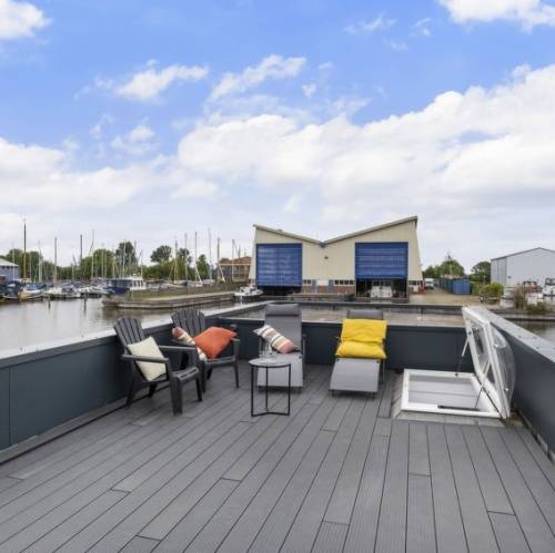 Woudsend, Países BajosWoudsend a 13 km de Sneek: Casa flotante muy moderna, confortable, lujosa del año 2023. A 400 m del centro de Woudsend, lugar tranquilo, soleado, a orillas del lago. Lancha motora. Zona de aparcamiento céntrica. Estación de carga eléctrica. Tienda, supermercado 400 m, restaurante 300 m, parada de autobús 700 m. Campo de golf 10 km, escuela de vela 400 m, tenis 1.5 km, centro ecuestre 6.6 km, pista de hielo 30 km. Atracciones en los alrededores: Heeg 9 km, Sloten 10 km, Balk 10 km, Museum Joure (Douwe Egberts) 19 km, Sneek 13 m. Lagos conocidos fácilmente accesibles: Friese Meren 2 km. A tener en cuenta: pesca permitida [con previa autorización]. Se pueden reservar alojamientos adicionales. "Harboursuite incl. Boot", casa 3 estancias 42 m2. Con mobiliario confortable: salón. Salida al balcón. 1 dorm. con 1 x 2 literas. 1 dorm. con 1 cama doble. Cocina abierta (4 fogones, horno, lavavajillas, microondas, congelador) con mesa de comedor. Ducha/WC. Calefacción. Balcón 8 m2, terraza 30 m2. Muebles de terraza, tumbonas (2), rincón para sentarse. Vista panorámica al río. El alojamiento dispone de: secador de pelo. Internet (Wifi, gratis). Plaza de aparcamiento. A tener en cuenta: detector de humo.