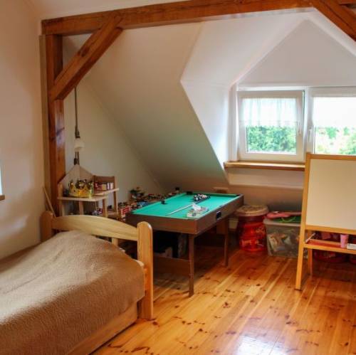 Magnuszew, PoloniaCasa unifamiliar "Latków", rústica, confortable del año 2011. En las afueras de la localidad, lugar tranquilo, soleado, a 500 m del río, en el campo. Privado: terreno 5'200 m2 (vallada). Terraza (40 m2), muebles de jardín, barbacoa, lugar para hoguera, parque infantil (tobogán, columpio). En el inmueble: alarma, lavadora. A disposición: bicicletas (3). Aparcamiento junto a la casa en el mismo terreno. Tienda 3 km, tienda de comestibles 3 km, supermercado 2 km, restaurante 3 km, parada de autobús 2.5 km, piscina cubierta 14 km. Centro ecuestre 19 km. Atracciones en los alrededores: Skansen Wojskowy w Mniszewie 14 km, Puszcza Kozienicka 30 km, Spływy kajakowe 15 km. Vivienda adecuada para 10 adultos + 2 niños. El propietario no acepta grupos de adolescentes/jóvenes. Casa 8 estancias 200 m2 en 2 plantas. Salón 35 m2 con 1 plegatín (120 cm, 200 cm de longitud), chimenea y TV. Salida al jardín, a la terraza. 1 dorm. 10 m2 con 1 cama de matrimonio (140 cm, 200 cm de longitud), TV satélite. 1 dorm. 12 m2 con 1 cama (140 cm, 200 cm de longitud), 1 x 2 literas (90 cm, 200 cm de longitud). 1 dorm. 13 m2 con 1 cama de matrimonio (180 cm, 200 cm de longitud), 1 cama-nido (1 pers. 200 cm de longitud), TV. Cocina abierta 14 m2 (4 fogones, horno, lavavajillas, microondas, congelador) con rincón-comedor. WC separado, baño/ducha/WC. Calefacción eléctrica, calefacción de leña. Planta superior: 1 dorm. 8 m2, pequeño con 1 cama de matrimonio (120 cm, 200 cm de longitud). 1 dorm. 6 m2, pequeño con 1 cama (90 cm, 200 cm de longitud). 1 dorm. 20 m2 con 2 camas (90 cm, 200 cm de longitud). Baño/ducha/WC.