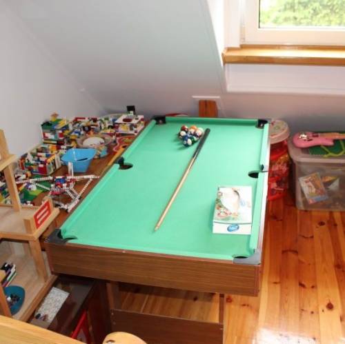 Stacze, PoloniaLa casa está en la desembocadura del río "Lega" al lago "Stacki". Hay la posibilidad de amarrar el barco en el río. A su disposición: 10 bicicletas, 2 canoas y un campo para jugar a volleyball, handball, basketball y badminton. Casa unifamiliar "Stacze", bonita del año 2005, reformada en 2019, rodeada de prados. En la periferia, lugar tranquilo, soleado, a 100 m de un bosque, a 200 m de un lago, junto al rìo, en una calle. Comunitario: tenis (1 x pista rápida), iluminado (01.May. - 30.Sep.) (extra). Privado: terreno 2'000 m2 (vallada), pradera (vallada). Terraza, muebles de jardín, barbacoa, lugar para hoguera, parque infantil (tobogán, columpio, cajón de arena). En el inmueble: billar, futbolín, lavadora, secadora. Aparcamiento junto a la casa en el mismo terreno. Tienda 8 km, tienda de comestibles 4 km, supermercado 20 km, restaurante 20 km, parada de autobús 200 m, playa de arena 300 m. Tenis 10 m. Atracciones en los alrededores: Ełk 23 km. Casa 7 estancias 260 m2 en 2 plantas. Parcialmente abuhardillada, con mobiliario confortable y bonito: sala de estar 80 m2 con chimenea y barra americana. Salida a la terraza. WC separado. Planta superior: salón-comedor abierto con chimenea, TV satélite y radio. Salida al balcón. 3 dorm., abuhardillados, cada habitación con 2 camas, ducha/WC y TV. 1 dorm. con 1 sofá-cama doble, ducha/WC y TV. 1 dorm. con 2 camas y TV. Cocina (4 fogones, horno, lavavajillas, microondas, cafetera eléctrica). Ducha/WC. Calefacción eléctrica. Balcón 3 m2. Tumbonas (10). El alojamiento dispone de: lavadora, plancha, leña (extra). Plaza de aparcamiento junto a la casa.