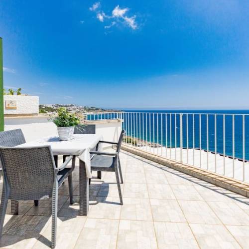 Castro, ItaliaMarina di Marittima: Casa adosada "Sun & Sea terrace", bonita, rodeada de árboles. A 400 m del centro de Castro Marina, a 3 km del centro de Castro, lugar soleado en una pendiente, a 150 m del mar, a 150 m de la playa, cruzando la calle. Comunitario: jardín plantas y árboles. En el inmueble: aire acondicionado, alarma. Cambio de sábanas 1 vez por semana (suplemento extra). Cambio de toallas diaria (suplemento extra). Posibilidad de limpieza diaria (extra). Acceso por escaleras (90 escalones) hasta la casa. Posibilidad de aparcamiento en la calle. Tienda de comestibles 600 m, supermercado 2 km, restaurante 800 m, bar 500 m, parada de autobús 100 m, estación de tren 8 km, playa de gravilla 100 m, playa rocosa 600 m. Atracciones en los alrededores: Cala dell'Acquiaviva 300 m, Santa Cesarea Terme 7 km, Otranto 25 km, Leuca 25 km, Grotta Zinzulusa 3 km. A tener en cuenta: la propiedad con ref: 300.1 - 300.2 está situada en la misma parcela. Apartamento de 2 estancias 50 m2 en el 1° piso. Luminoso, con mobiliario confortable y bonito: 1 dorm. doble. Salón-comedor con 1 sofá-cama doble y mesa de comedor. Salida a la terraza. Rincón-cocina (4 fogones, horno, congelador) con TV. Ducha/bidet/WC. Aire acondicionado, aire caliente (extra). Calefacción disponible desde el 15.11. al 31.03. Terraza 50 m2. Muebles de terraza, tumbonas. Vista panorámica muy bonita al mar, al jardín y a la localidad. Adecuado para familias.