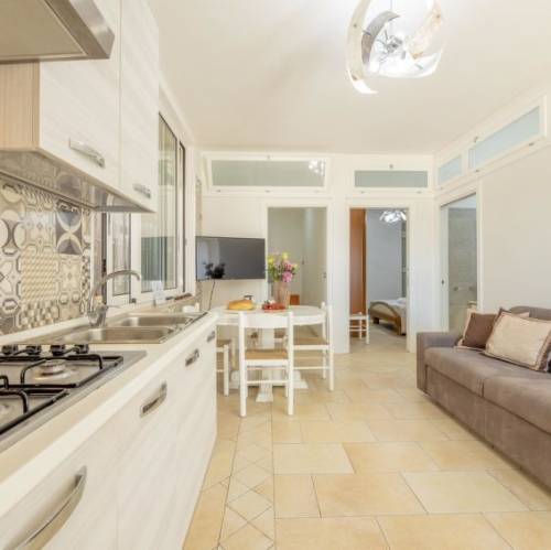 Castro, ItaliaMarina di Marittima: Casa adosada "Sun & Sea terrace", bonita, rodeada de árboles. A 400 m del centro de Castro Marina, a 3 km del centro de Castro, lugar soleado en una pendiente, a 150 m del mar, a 150 m de la playa, cruzando la calle. Comunitario: jardín plantas y árboles. En el inmueble: aire acondicionado, alarma. Cambio de sábanas 1 vez por semana (suplemento extra). Cambio de toallas diaria (suplemento extra). Posibilidad de limpieza diaria (extra). Acceso por escaleras (90 escalones) hasta la casa. Posibilidad de aparcamiento en la calle. Tienda de comestibles 600 m, supermercado 2 km, restaurante 800 m, bar 500 m, parada de autobús 100 m, estación de tren 8 km, playa de gravilla 100 m, playa rocosa 600 m. Atracciones en los alrededores: Cala dell'Acquiaviva 300 m, Santa Cesarea Terme 7 km, Otranto 25 km, Leuca 25 km, Grotta Zinzulusa 3 km. A tener en cuenta: la propiedad con ref: 300.1 - 300.2 está situada en la misma parcela. Apartamento de 3 estancias 100 m2, en la planta baja. Luminoso, con mobiliario confortable y bonito: 1 dorm. doble, ventana al salón. 1 dorm. con 1 x 2 literas, ducha/bidet/WC. Salón-comedor grande con mesa de comedor y TV. Salida a la terraza. Rincón-cocina (4 fogones, horno, congelador). Ducha/bidet/WC. Aire acondicionado, aire caliente (extra). Calefacción disponible desde el 15.11. al 31.03. Terraza 10 m2. Muebles de terraza. Vista panorámica muy bonita al mar y a la localidad. El alojamiento dispone de: lavadora. Adecuado para familias.
