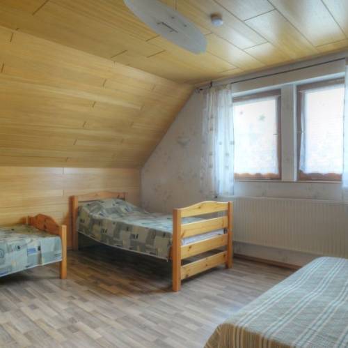 Immekath, AlemaniaCasa semiadosada "Eifelnatur (Haus 3)", rodeada de árboles y campos. En la periferia, a 300 m del centro, lugar tranquilo, elevado en una pendiente, a 50 m de un bosque, en una calle sin salida, en el campo. Comunitario: terreno 500 m2, jardín 200 m2 con césped 50 m2. En el inmueble: calefacción central. Cambio de sábanas 1 vez por semana. Cambio de toallas 1 vez por semana. Servicio a domicilio de panecillos y servicio a domicilio de bebidas posibilidad: bajo petición (extra). Aparcamiento (número limitado) en el mismo terreno. Tienda de comestibles 5.3 km, supermercado 5.3 km, centro comercial 5 km, restaurante 150 m, bar 3.3 km, panadería 5.3 km, café 3.3 km, alquiler de bicicletas 10 km, parada de autobús "Daun" 10 km, estación de tren "Gerolstein" 23 km, piscina 7.6 km, piscina cubierta 10 km, lago 7.6 km. Campo de golf (18 hoyos) 15 km, tenis 3.5 km, minigolf 7.8 km, centro ecuestre 10 km, rutas de senderismo desde la casa 50 m. Atracciones en los alrededores: Vulkanmaare, Vulkanmuseum, Kreuzweg, Strohner Märchen, Wildpark Daun, Adler- und Wolfspark Kasselburg. Lagos conocidos fácilmente accesibles: Pulvermaar 1.5 km. A tener en cuenta: coche recomendable. El propietario no acepta grupos de adolescentes/jóvenes. El propietario vive en el mismo inmueble. Vecindario muy sensible a ruidos. Se ruega respetar la tranquilidad y normas de buen comportamiento. Apartamento de 4 estancias 134 m2 en 2 plantas, en la planta baja. Con mobiliario moderno y de buen gusto: salón-comedor 36 m2 con TV satélite (pantalla plana), CD y DVD. Salida a la terraza. 1 dorm. 17 m2 con 1 cama doble (180 cm, 200 cm de longitud). 1 dorm. 13 m2 con 2 camas (90 cm, 200 cm de longitud). Pequeña cocina 6 m2 (4 fogones, horno, lavavajillas, tostadora, hervidor de agua eléctrico, microondas, cafetera eléctrica). Ducha/WC. Planta superior: 1 dorm. 36 m2, abuhardillado con 1 cama (90 cm, 200 cm de longitud), 1 cama doble (180 cm, 200 cm de longitud), TV satélite (pantalla plana), DVD. Baño/WC. Terraza 43 m2. Muebles de terraza, barbacoa. El alojamiento dispone de: lavadora, plancha, mosquitera, trona, secador de pelo, cómoda con cambiador para bebés. Internet (Wifi, gratis). A tener en cuenta: apartamento para no fumadores. Permitido máximo 2 mascotas / perros. Detector de humo.