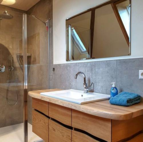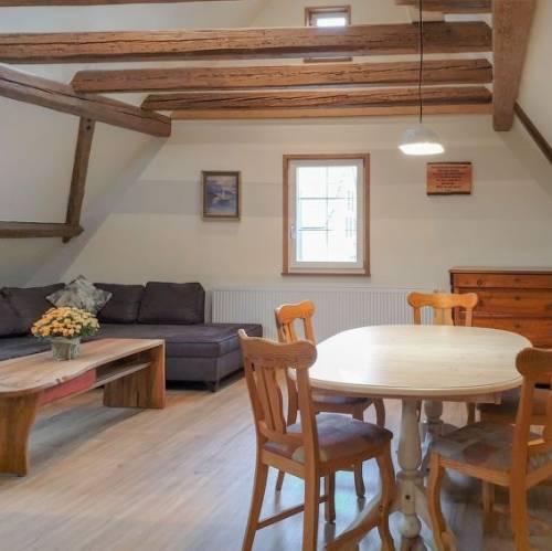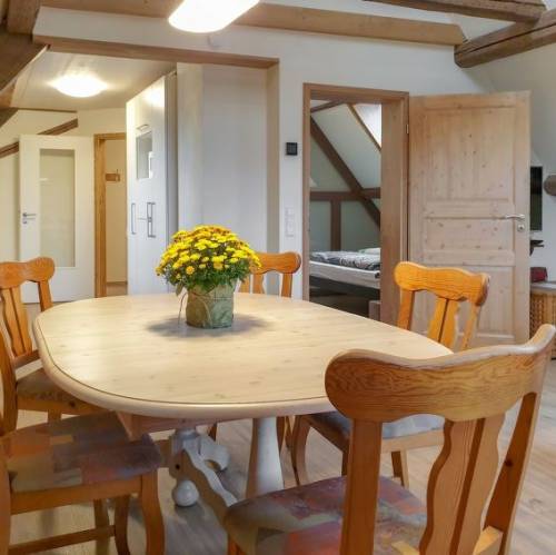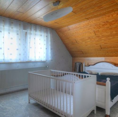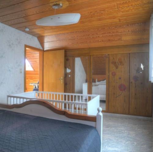 Großornach, AlemaniaCasa de dos viviendas lujosa, rodeada de árboles y prados. En el barrio de Schönbronn, a 6 km del centro de Grosserlach, lugar tranquilo, a 200 m de un bosque, a 4 km de un lago. En el complejo: sauna (extra). Lavadora (extra), secadora (uso comunitario, extra). Aparcamiento junto a la casa. Tienda de comestibles 6 km, supermercado 10 km, restaurante 2 km, panadería 6 km, parada de autobús 500 m, estación de tren "Sulzbach an der Murr" 7 km, piscina 10 km, lago "Starkholzbachersee" 4 km. Campo de golf (18 hoyos) 2 km, tenis 6 km, telesquí 6 km, pista de esquí de fondo 200 m, parque infantil 1 km. Atracciones en los alrededores: Limesturm 2 km, Würth-Museum 20 km, Altstadt Schwäbisch-Hall 25 km. Zona de senderismo Schwäbisch-Fränkischer Wald, Rottal, Fischbachtal. "Lärche", apartamento en dos niveles 5 estancias 150 m2 en 2 plantas en el 2° piso. Con mobiliario de estilo y con mucha madera: salón-comedor con chiminea nórdica y TV satélite (pantalla plana). Salida al balcón. 1 dorm. doble. 1 dorm. con 1 cama. Cocina (horno, lavavajillas, 4 placas de vitrocerámica, cafetera eléctrica). WC separado, baño/ducha/WC. Buhardilla: 2 dorm. dobles, abuhardillados. Ducha/WC. Calefacción. Muebles de balcón. Vista muy bonita al paisaje. El alojamiento dispone de: leña (gratis). Internet (Wifi, gratis). A tener en cuenta: apartamento para no fumadores. Detector de humo.