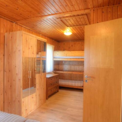 Gerolstein, AlemaniaResort "Waldferienpark Gerolstein". En las afueras de la localidad, a 3 km del centro de Gerolstein, lugar aislado, tranquilo en una colina, a 100 m de un bosque, a 100 m del riachuelo, en el campo. Comunitario: piscina cubierta climatizada (70 m2, 130 cm de profundidad) con escalera interior. Ducha/WC en zona de piscina, parque infantil (tobogán, columpio, cajón de arena), mini zoo. Privado: jardín con césped. En el complejo: restaurante, bar, sala de desayuno, sala de descanso, billar, trampolín, solarium. Servicio a domicilio de panecillos posibilidad: (extra). Acceso por escaleras hasta la casa. Aparcamiento en el mismo terreno. Tienda 3 km, tienda de comestibles 2.5 km, supermercado 2.5 km, centro comercial 3 km, alquiler de bicicletas 6 km, parada de autobús "Gerolstein" 3 km, estación de tren "Gerolstein" 3 km, piscina 3 km, lago 3.2 km. Campo de golf (18 hoyos) 18 km, tenis 3 km, minigolf 50 m, centro ecuestre 4 km, rutas de senderismo desde la casa 50 m. Atracciones en los alrededores: Kylltal, Burg Eltz. Lagos conocidos fácilmente accesibles: Pulvermaar 24 km. A tener en cuenta: coche recomendable. "Holzchalet E", bungalow 3 estancias 52 m2. Con mobiliario agradable: salón-comedor 28 m2 con TV satélite (pantalla plana). Salida a la terraza. 1 dorm. 6 m2 con 1 cama doble (160 cm, 190 cm de longitud). 1 dorm. 6 m2 con 1 x 2 literas (80 cm, 190 cm de longitud). Rincón-cocina (4 placas de vitrocerámica, microondas, cafetera eléctrica) con pequeño barra americana. Ducha/WC. Calefacción de gas. Terraza 15 m2 parcialmente cubierta. Muebles de terraza. Vista panorámica espléndida a las montañas y al paisaje. A tener en cuenta: casa para no fumadores. Permitido máximo 2 mascotas / perros. Detector de humo, extintores.