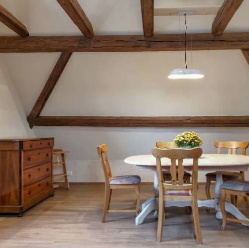 Ichenheim, AlemaniaGranja "Dieboldshof" del año 1795. En la periferia, a 400 m del centro de Ichenheim, a 4 km del río. Comunitario: terreno con árboles frutales, terreno con hierba. Terraza-jardín, parque infantil. Privado: barbacoa. En el inmueble: tenis de mesa, calefacción central, lavadora (uso comunitario, extra), alquiler de bicicletas. Aparcamiento junto a la casa. Tienda, restaurante 300 m, panadería 500 m, parada de autobús 50 m, estación de tren "Offenburg" 12 km, piscina 12 km, piscina cubierta 12 km. Campo de golf (18 hoyos) 15 km, tenis 400 m, centro ecuestre 1 km. Atracciones en los alrededores: Europapark 25 km, Vogtsbauernhöfe 35 km. Lagos conocidos fácilmente accesibles: Baggersee 2 km, Rhein 4 km. Zona de senderismo Ortenauer Radwanderweg 300 m. A tener en cuenta: Se pueden reservar alojamientos adicionales. Ruta para paseos en bicicleta a 300m. Lago Baggersee a 2 km. Río Rhin a 4 km. Granja "Dieboldshof" (en pleno funcionamiento) con pequeños animales. Los 3 alojamientos de vacaciones se encuentran en un edificio independiente construido en 1795, con fachadas entramadas. Apartamento de 3 estancias 60 m2 en el 1° piso. Con mobiliario agradable: salón-comedor abuhardillado con TV satélite. 1 dorm., abuhardillado con 2 camas. 1 dorm. doble, abuhardillado. Rincón-cocina (horno, lavavajillas, 4 placas de vitrocerámica, cafetera eléctrica). Ducha/WC. El alojamiento dispone de: trona. Internet (Wifi). A tener en cuenta: apartamento para no fumadores.