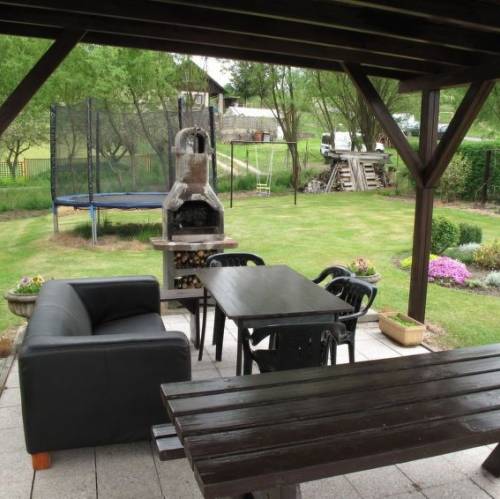 Valašská Bystřice, República ChecaJanová, a 30 km de Valašská Bystřice: Chalet tipo suizo "Janová", confortable de 2 plantas, reformado en 2002. Por encima Janovou, en una pendiente, en el campo. Comunitario: terreno 5'000 m2. Caseta de barbacoa. Privado: jardín con césped 700 m2, piscina redonda (4 m diámetro, Disponible por temporada: 01.Jun. - 31.Ago.). Terraza (20 m2), muebles de jardín, barbacoa. En el inmueble: Wifi, sauna de rayos infrarrojos, calefacción central, lavadora. Aparcamiento junto a la casa. Tienda de comestibles 2 km, restaurante 2 km, estación de tren "Janove", piscina 7 km, piscina cubierta 7 km. Telesquí 1 km, telesilla 35 km, pista de esquí de fondo 1 km, pista de hielo 2 km. A tener en cuenta: coche recomendable. Hay un prado con ovejas cerca del acceso a la casa. El propietario vive en una parte separada de esta casa con entrada independiente. Apartamento de 4 estancias 70 m2, en la planta baja. Con mobiliario bonito: salón 20 m2 con 1 sofá-cama doble, 1 posibilidad para dormir, chiminea nórdica, TV, TV satélite, conexión TV, radio y CD. 1 dorm. 5 m2 con 1 cama doble. 1 dorm. 12 m2 con 2 camas y 1 posibilidad para dormir. Cocina-comedor (horno, 4 placas de vitrocerámica, hervidor de agua eléctrico) con mesa de comedor. Salida a la terraza, a la terraza-jardín, a la piscina. Ducha, WC separado. En planta inferior: cocina). El alojamiento dispone de: Internet (Wifi, gratis). 1 mascota / perro.