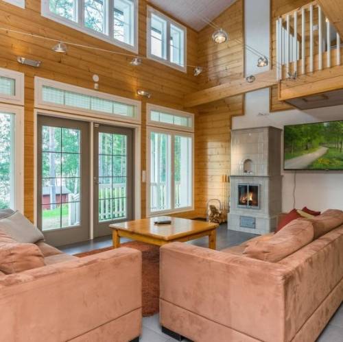 Savonlinna, FinlandiaPermitido máximo 2 mascotas / perros. Savonlinna 50 km al noroeste del lago Saimaa / Joutenvesi a 40 m, fondo de arena / piedra suavemente profundizando, muelle, bote propio. Chalé de madera de 2014, cocina-salón grande, en la planta baja 3 dormitorios con 2 camas en cada uno, dormitorios tienen ducha / WC en suite. En la planta superior un dormitorio con 2 camas, buhardilla para dormir con 2 camas, WC en la planta superior. Lavadero / pasillo, vestidor, baño, sauna (estufa eléctrica), WC, terraza grande. Sauna independiente, estufa a leña, sauna a orillas del lago está en uso entre 1.5 - 31.10. WI-Fi y programas por satélite. La villa tiene en total 5 duchas y 5 WC. ¡Nota! La hora de check out para esta cabaña es a las 12.00 (del mediodía, esto se refiere también a las reservas de fines de semana). Perfecto destino vacacional durante todo el año para unas vacaciones activas así como para el tiempo con familia o relajación. Las villas tienen un toque finlandés, mucha madera y materiales naturales, espacio y colores claros. Aquí se puede vivir en un ambiente lujoso cerca de la naturaleza. Bosque y las aguas de pesca están justo enfrente de la puerta de entrada y también un parque infantil común y playa arenosa. Tallusniemi se encuentra en un lugar precioso a 13 km en coche del pueblo Oravi. Cada villa tiene su propia playa privada y muelle muy cerca de las aguas de pesca. Motor fueraborda (2,3 hp) y bote extra en alquiler.