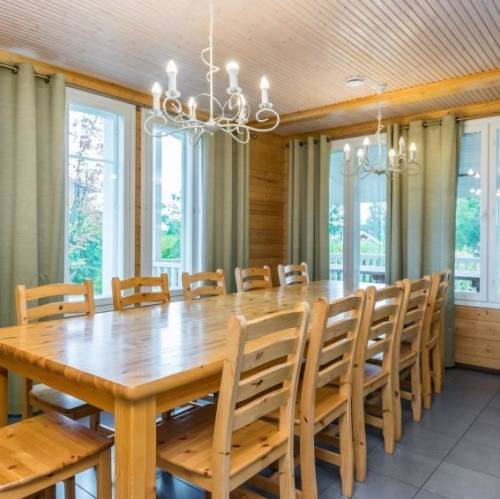Savonlinna, FinlandiaPermitido máximo 2 mascotas / perros. La villa señorial se encuentra en Oravi, a orillas del lago Haukivesi. Ofrece una ubicación tranquila con una playa privada, un embarcadero, una pequeña playa de arena y una sauna junto al lago. Hay una zona de actividades compartida con la villa vecina, donde se puede jugar a juegos como el bádminton. La sauna del lago está disponible entre el 1 de mayo y el 15 de octubre. En la playa hay una bañera de hidromasaje que los huéspedes pueden utilizar durante todo el año. Junto a la bañera también hay un lugar para hacer hogueras y una mesa para limpiar pescado. A 46 km al noroeste de Savonlinna, lago Saimaa 50 m, con fondo de grava dura y playa de suave pendiente. Muelle propio y barca de remos. Villa de madera de alta calidad, construida en 2008, cuenta con un amplio salón/cocina en la planta baja, tres dormitorios con dos camas en cada uno, un lavadero/vestidor, un cuarto de baño con dos duchas, una sauna eléctrica, un cuarto de ducha separado y dos WC separados. En la planta superior, hay tres dormitorios con dos camas cada uno, un aseo y un cuarto de ducha. Se admiten mascotas por un cargo adicional de 30 euros por mascota. La limpieza final y la ropa de cama están incluidas en el alquiler. Las villas se encuentran a 4,5 km del pueblo de Oravi. En Oravi hay una recepción, servicios de alquiler, una tienda del pueblo y el restaurante Ruukinranta, todo en el mismo edificio. El punto de partida de la ruta de senderismo de invierno y el barco de la ruta de verano a Linnansaari también están cerca. En la recepción podrá informarse sobre el alquiler de lanchas motoras, canoas, kayaks y tablas de SUP. Entre las actividades más populares están explorar el Parque Nacional de Linnansaari, remar, pescar, navegar en kayak, nadar, patinar sobre hielo y hacer excursiones por el bosque. Hay muchas actividades guiadas disponibles, desde yoga en la sauna hasta safaris en busca de focas. Las excursiones guiadas por el lago pueden iniciarse directamente desde el embarcadero de la villa. Parque Nacional de Linnansaari a 1 km, Oravi a 4,5 km, Savonlinna a 46 km, Parque Nacional de Kolovesi a 46 km, Helsinki a 378 km.