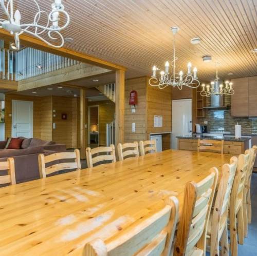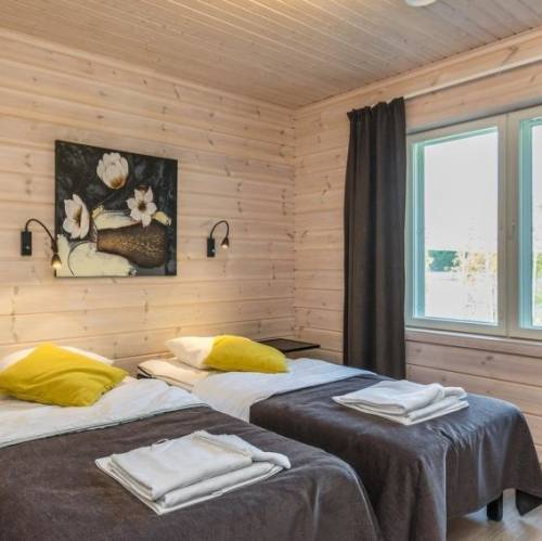 Inari, FinlandiaUna cabaña idílica, espaciosa y cómoda para una familia grande o un grupo de amigos en la zona Etelärinne I de Kaunispää, cerca de los servicios del centro de Saariselkä. Desde la sección de sauna, podrás refrescarte y admirar la naturaleza ártica en una terraza protegida. La cabaña de madera de 2 plantas dispone de cocina/salón, 6 dormitorios, chimenea, vestidor, lavabo, sauna, 3 aseos (dos con ducha/aseo), guardarropa y terraza. Una cálida sala de mantenimiento de esquís. Dormitorios abajo: 2 dormitorios, uno con cama doble (160x200cm) y ducha/aseo y el otro con 2 camas individuales. Dormitorios arriba: 4 dormitorios, 2 dormitorios tienen 2 camas/habitación y 2 dormitorios tienen 1 cama/habitación. Además, un armario y ducha/aseo arriba. Puertas para bebés en las escaleras. La limpieza final y la ropa de cama entregada para el número de personas reservadas están incluidas en el precio. El equipamiento de la cabaña también incluye un amplio juego de cubiertos y utensilios de cocina, hervidor de agua y café, tostadora, batidora eléctrica, termo, secador de pelo, orinal para niños y plancha. Un cálido cuarto de mantenimiento de esquís con un puesto de engrase y una plancha. La terraza y el vestidor están conectados con la sección de sauna.