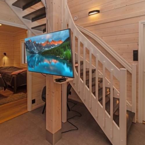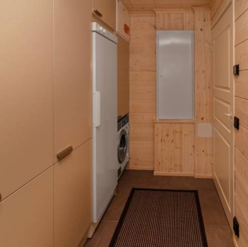 Inari, FinlandiaApartamento en una casa adosada de troncos plateados en el centro de Saariselkä. La cabaña de 110 metros cuadrados tiene una cocina/sala de estar, 3 dormitorios, un baño, una sauna, un lavadero, 2 aseos y una sala de estar en la planta superior. Un cálido cuarto de mantenimiento de esquís en la dependencia. Dormitorios abajo: 1 dormitorio con 2 camas. Dormitorios arriba: 2 dormitorios, cada uno con 2 camas separadas. Además, hay 2 sofás cama (anchura 120 cm) en el salón. Los precios incluyen la limpieza y la ropa de cama suministrada para el número de personas reservado. El equipamiento del apartamento también incluye el gran juego de cubiertos y utensilios de cocina (la Illusia árabe), un hervidor de agua y café, una tostadora, una batidora eléctrica, un reproductor de Blu-ray (conexión a la TV de arriba), una plancha y tabla de planchar y 2 secadores de pelo. La sala de mantenimiento de esquís está en un cálido patio del edificio y hay una mesa de engrase con un soporte para esquís. Hay dos armarios y otros espacios de almacenamiento para cada huésped. El mobiliario del apartamento, por ejemplo, la colocación de las camas se puede modificar según las necesidades. En el apartamento hay ventilación mecánica.