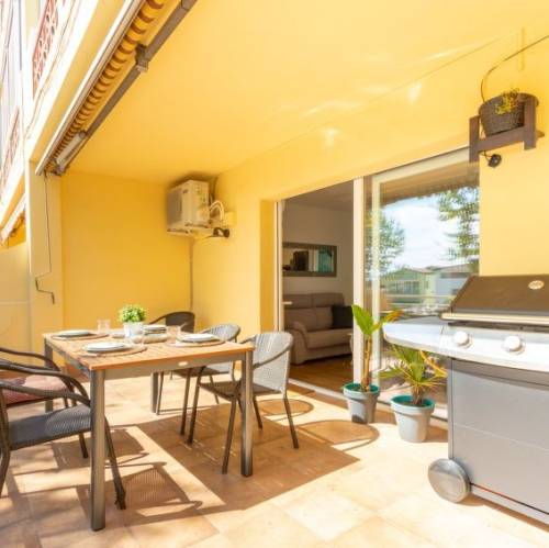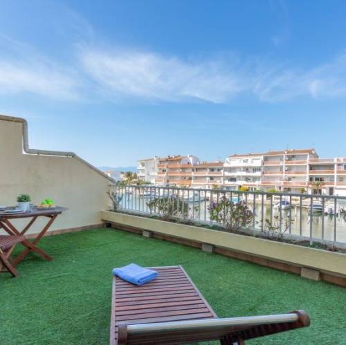 Empuriabrava, EspañaCasa de apartamentos "Port Emporda", sencillo de 3 plantas. En el barrio de Port Empordá, a 1 km del centro de Empuriabrava, lugar tranquilo, soleado, a 1.4 km del mar, a 20 m del canal. Tienda, tienda de comestibles 500 m, supermercado 1 km, centro comercial 1 km, restaurante, bar, café 25 m, internet café 200 m, alquiler de bicicletas 1 km, bar al aire libre 25 m, playa de arena "Empuriabrava" 1.4 km. Puerto deportivo 1.5 km, campo de golf (12 hoyos) 15 km, escuela de surf 1.4 km, escuela de vela 1.4 km, tenis 1 km, minigolf 500 m. Atracciones en los alrededores: Túnel del viento Empuriabrava 2 km, Parque Aquático Roses 10 km, Casino y festival de Perelada 12 km, Museo Dalí Figueres 15 km, Ruines de Empuries 21 km, Cadaqués y Cap de Creus 18 km. Grupos de jóvenes sólo bajo petición. Apartamento de 3 habitaciones 75 m2 en el 1° piso, orientación suroeste. Espacioso y luminoso, completamente reformado en 2020, con mobiliario moderno y agradable: salón-comedor con 1 sofá-cama doble (140 cm, 190 cm de longitud), mesa de comedor, TV digital, aire acondicionado y bomba de calor, caliente. Salida a la terraza, orientación sur y orientación oeste. 1 dorm. con 1 cama de matrimonio (160 cm, 190 cm de longitud). Salida a la terraza, orientación sur y orientación este. 1 dorm. con 2 camas (80 cm, 190 cm de longitud). Salida a la terraza. Grande cocina abierta (horno, lavavajillas, 3 Placas de inducción, tostadora, hervidor de agua eléctrico, microondas, congelador, cafetera eléctrica). Ducha/WC. Terraza grande 17 m2, orientación sur y orientación oeste terraza grande 22 m2, orientación norte y orientación este. Muebles de terraza, barbacoa eléctica. Vista bonita a la localidad y al canal. El alojamiento dispone de: lavadora, plancha, cuna, secador de pelo. Internet (Wifi, gratis). Garaje n. 2 a 300 m, ancho 240 cm, largo 540 cm. A tener en cuenta: apartamento para no fumadores. TV solamente ES. Sin ascensor. HUTG057157