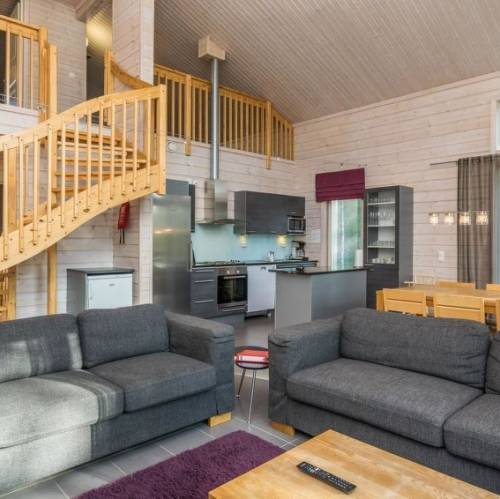 Inari, FinlandiaSituado en el centro de Saariselkä, este apartamento en una casa adosada de troncos plateados ofrece el entorno perfecto para unas vacaciones. El espacioso apartamento es ideal para familias y grupos de amigos. Cuenta con un cómodo salón-cocina donde los huéspedes podrán preparar deliciosas comidas y relajarse viendo la televisión o disfrutando del resplandor de la chimenea. El salón conduce a la terraza, que ofrece excelentes vistas a los alrededores. La planta baja dispone de tres dormitorios con dos camas cada uno y un baño en suite. El loft incluye una sala de estar, un escritorio y una alcoba con dos camas. La sauna ofrece un lugar fantástico para relajarse, con dos duchas incluidas en el baño. La limpieza final, las sábanas hechas en la cama y las toallas están incluidas en el precio. El apartamento está equipado con vajilla completa, cafetera, hervidor, tostadora, batidora eléctrica, plancha y secador de pelo. Hay una puerta para niños en lo alto de las escaleras. Además, hay espacio para guardar varias bicicletas de montaña si es necesario. La leña no forma parte del precio durante la temporada de verano. Aquellos que disfrutan del esquí pueden realizar el mantenimiento de su equipo en la sala de mantenimiento de esquís, equipada con un portaesquís Puuru y una plancha.