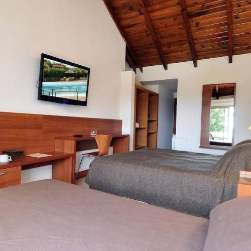 Villa La Angostura, ArgentinaDos Bahias Lake Resort se encuentra en Villa La Angostura. Cuenta con zona privada de playa, piscina climatizada y wi-fi gratis en zonas comunes, además de bañera / tina de hidromasaje.Necesitas saber:· Menú apto para celíacos· Mascotas: no se admiten· Zona de fumadores· Tensión eléctrica de 220vEl alojamiento sirve diariamente el desayuno, el cual se ofrece en el restaurante. También dispone de bar y cafetería. El personal de la propiedad proporcionará servicio a la habitación.Entre los servicios de la propiedad se encuentran sauna, servicio de masajes, estacionamiento gratis y cancha de tenis. Los huéspedes también podrán disfrutar de recepción 24 hrs y servicio de guarda-equipaje gratis. Por un suplemento, la propiedad cuenta con servicio de traslado al aeropuerto, servicio de traslado en los alrededores y servicio de lavandería.