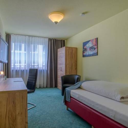 Singen, AlemaniaEl hotel está situado en el centro de Singen. Se accede desde la autopista A81 en coche y está solamente a un corto paseo a pie de la principal estación de tren. La decoración de las habitaciones es muy moderna y tienen un ambiente muy luminoso. Las instalaciones son igualmente modernas, disponen de televisión de pantalla plana y de espacio para un escritorio. Los cuartos de baño también están en buenas condiciones y están dotados de instalaciones modernas. El hotel tiene una sala para desayunar de diseño moderno y luminoso. El hotel tiene un bar situado en la planta baja con una terraza para tomar el sol. Se sirven tentempiés y bebidas. El hotel es un edificio relativamente bajo y de aspecto moderno, tiene algunas ventanas que van desde el suelo hasta el techo en la planta baja. El hotel tiene un vestíbulo de tamaño medio.