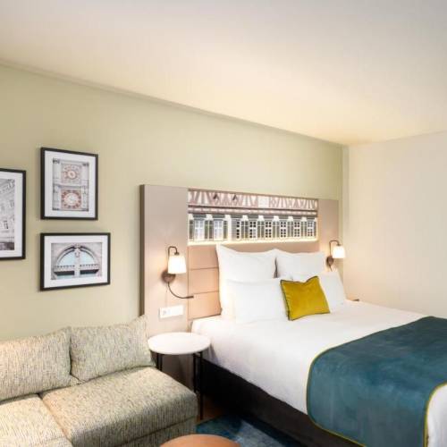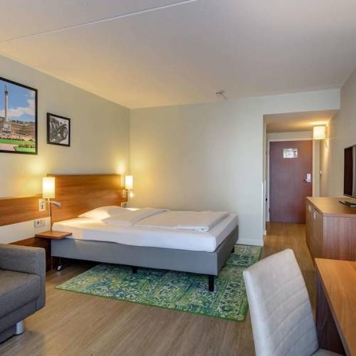 Ulm, AlemaniaSituado justo al lado de la estación de tren ICE, en el centro de la ciudad, se encuentra el InterCityHotel Ulm. Esta ciudad ofrece una gran oferta de actividades. Visiten la catedral gótica con la torre más alta del mundo. Muy cerca se encuentra también el ayuntamiento, que en su fachada tiene un reloj astronómico. Al Friedrichsau al Tiergarten y al recinto ferial se puede llegar fácilmente en autobús y tren. Los huéspedes del InterCity Hotel pueden utilizar el FreeCityTicket incluido en el precio de la habitación para viajar gratuitamente con el transporte público de la ciudad. Las 135 habitaciones insonorizadas, modernas y funcionales del hotel están equipadas para comenzar el día lleno de energía. Disponen de TV, teléfono, minibar y Wi-Fi. Las 3 salas de reuniones con aire acondicionado, luz natural y tecnología moderna tienen capacidad para 40 personas y garantizan el éxito de todos sus eventos en Ulm. Este hotel moderno y acogedor cuenta con todas las comodidades que necesitan los huéspedes.