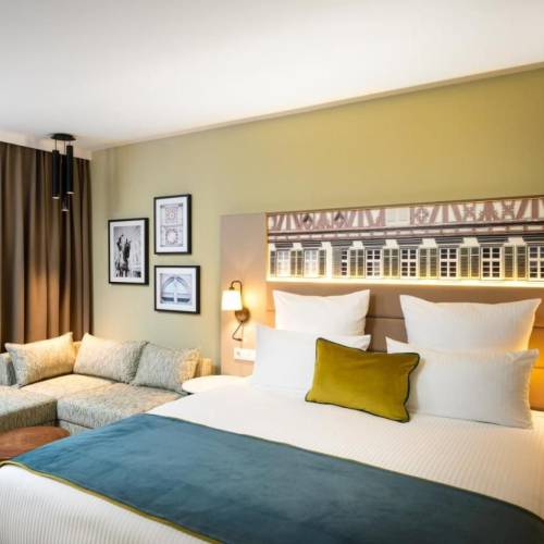 Ulm, AlemaniaEn medio del distrito de pescadores, el nuevo hotel de diseño ofrece la base perfecta para una estancia de lujo. Cualquiera que viva aquí no quiere salir del centro de la ciudad de Ulm. El centro, el Danubio y la Catedral de Ulm se encuentran a pocos minutos a pie. La fantástica ubicación del Design Hotel Boutique 005 Ulm City directamente en el centro de la ciudad garantiza una actitud particularmente agradable hacia la vida, ya que combina a la perfección tradición y modernidad. Una casa moderna en medio del casco histórico. Todas las habitaciones del nuevo hotel están ubicadas en la parte trasera iluminada por la luz del tradicional Hotel Stern y también son muy funcionales con su elegante mobiliario. Independientemente de si solo necesita una habitación doble o si quiere darse un capricho con algo especial, la boutique 005 Ulm City ya es uno de los consejos de Ulm. Especialmente las habitaciones dúplex nobles con vistas a la catedral merecen una estancia romántica. Gracias a una bañera independiente, puede relajarse en cualquier momento del día.