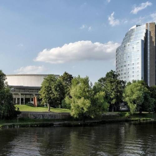 Ulm, AlemaniaEl hotel Maritim Hotel Ulm se encuentra a orillas del Danubio, no muy lejos de la estación de ferrocarril principal y de la feria de muestras y tiene acceso directo al centro de congresos de Ulm. Partiendo de aquí, un espléndido paseo por el Danubio lleva al romántico casco antiguo de la ciudad con el famoso Ulmer Münster, el histórico Fischerviertel (barrio de pescadores), Gerberviertel (curtidurías) y numerosos museos de gran interés. 287 habitaciones elegantes de 30 m2, incluyendo una suite presidencial de 162 m2 y otras 10 suites de 60 m2. Dispone de 3 restaurantes de primera clase, entre ellos el restaurante Panorama en la planta 16 con unas impresionantes vistas de la ciudad de Ulm y el Neu Ulm con capacidad para celebrar eventos de hasta 1500 personas en el salón más grande y 18 salas de banquetes y conferencias.