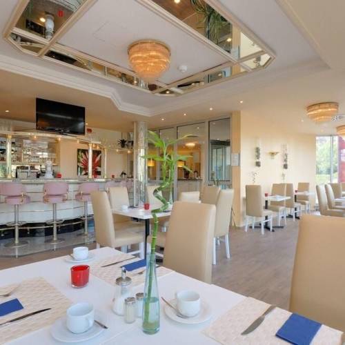Niedern, AlemaniaEl Best Western® Queens Hotel Pforzheim-Niefern cuenta con un fácil acceso en auto (a 500 metros de la autopista A8). El hotel está ubicado entre Stuttgart y Karlsruhe, a poca distancia de la "Ciudad del oro" de Pforzheim, que cuenta con lugares de interés, un museo de orfebrería y tiendas, entre otras atracciones. Inmersos en un paraje natural, ofrecemos una hermosa cervecería con terraza y jardín y barbacoa durante el verano. Nuestras amplias habitaciones, todas ellas remodeladas, cuentan con modernas instalaciones. Estacionamiento y Wi-Fi gratuitos en el hotel. Nuestro restaurante Paladin ofrece especialidades internacionales y regionales. Después de la cena, podrá disfrutar de una copa en el bar del hotel. Disfrute de su estancia en nuestro hotel.