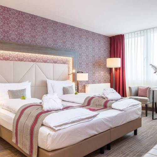 Kaarst, Alemania192 lujosas habitaciones, 12 suites, aire acondicionado en todas las ellas y salas de conferencias. Restaurante, bar, servicio de habitaciones, terraza. 12 salas con luz del día, 1400 m2 de salas de conferencias y banquetes. Dispone de sauna, baños de vapor, gimnasio, solarium y piscina. Conexión inalámbrica a internet (wireless lan) y 200 plazas de parking.