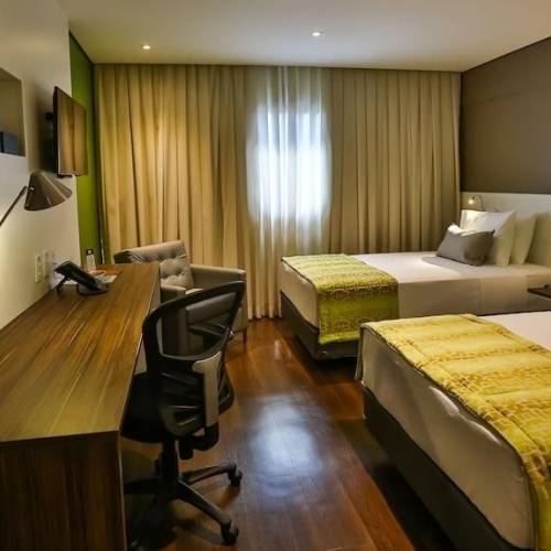 Goiânia, BrasilQuality Hotel Flamboyant está localizado en Goiania. Cuenta con piscina al aire libre todo el año, wi-fi gratis en zonas comunes y sauna, así como valet parking.Necesitas saber: Accesible para personas con movilidad reducida Unidades adaptadas a personas con movilidad reducida Se admiten mascotas pequeñas, por un costo adicional, que pesen menos de 20kg Tensión eléctrica de 220vEl alojamiento sirve diariamente el desayuno, el cual se ofrece en el restaurante. También dispone de bar. El personal de la propiedad proporcionará servicio a la habitación.Entre los servicios de la propiedad se encuentran campo de golf, gimnasio, recepción 24 hrs y servicio de guarda-equipaje gratis. Los huéspedes también podrán disfrutar de sala de reuniones y seguridad 24 hrs. Por un cargo, la propiedad cuenta con servicio de lavandería.