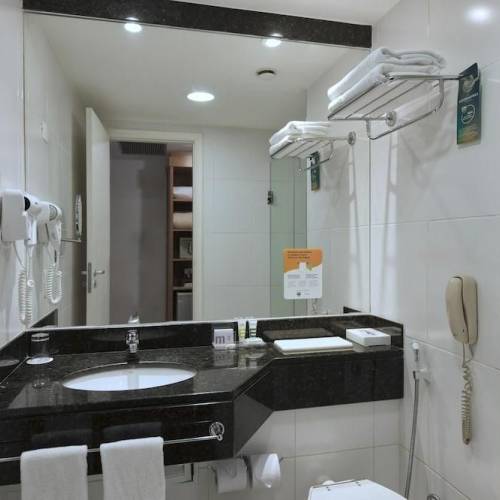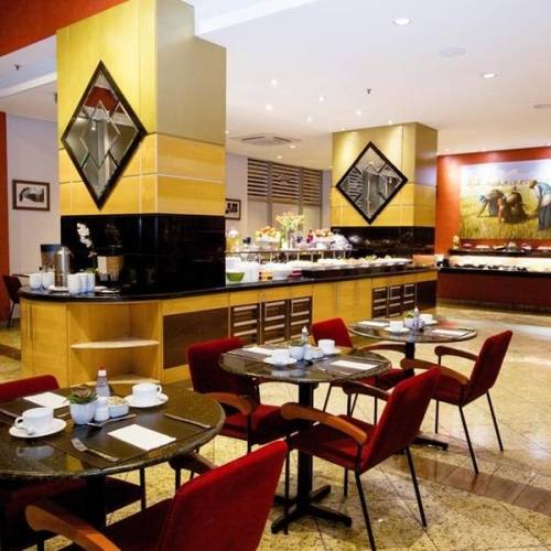 Guarulhos, BrasilUbicado en el centro de la ciudad de Guarulhos, el Bristol International Hotel ofrece fácil acceso a la autopista Presidente Dutra y servicio de transporte al aeropuerto internacional de Guarulhos según disponibilidad. Las amplias habitaciones están decoradas con buen gusto en tonos claros e incluyen TV por cable, escritorio, minibar y otras instalaciones. El edificio cuenta con una amplia gama de instalaciones de ocio, incluida una piscina climatizada donde podrá relajarse después de un ajetreado día en la gran São Paulo. El personal está preparado para ayudarlo con información turística, alquiler de automóviles, cambio de divisas y tienda de películas. El hotel de 4 estrellas está a solo 25 minutos en coche del aeropuerto y aproximadamente a 30 minutos en coche del centro de São Paulo.