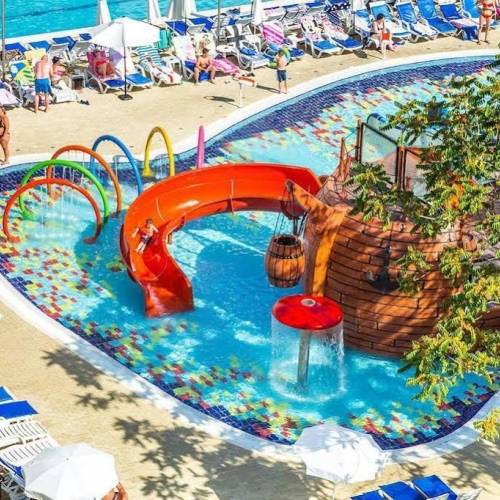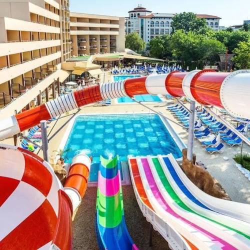 Slanchev Bryag, BulgariaEl Hotel Laguna Park and Aqua Club - All Inclusive, situado en el centro de Sunny Beach, a solo 250 metros de la playa, ofrece habitaciones con aire acondicionado y balcón y una piscina infantil con tobogán. También hay otras 2 piscinas con bares, un bar y una zona de juegos infantil con miniclub. También se proporciona acceso gratuito a un parque acuático. El Laguna Park cuenta con un restaurante principal con terraza al aire libre, varias tiendas pequeñas e instalaciones de bienestar. Para su seguridad, hay un médico residente en el Laguna.