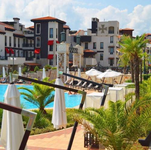 Lozenets, BulgariaOasis Resort and SPA es un complejo cerrado situado en la costa de uno de los golfos más bellos del sur del Mar Negro búlgaro. El complejo está situado en 60 km de la ciudad de Burgas y está a sólo 2 km de la famosa localidad de verano 'Lozenec'. La perfecta combinación de hermosos jardines verdes y maravillosas vistas al mar es la mejor predisposición para sus vacaciones de verano de ensueño. Elija para sus vacaciones un alojamiento en el hotel * 'Maltese Castle' o si le gustan más las vacaciones independientes, puede optar por alojarse en los apartamentos del complejo. El complejo ofrece a sus huéspedes un aparcamiento vigilado. En el territorio del hotel encontrará muchos supermercados, tiendas de belleza y farmacias, por lo que todo lo que pueda necesitar estará a su alcance. La distinción más importante del complejo turístico y balneario Oasis en comparación con otros balnearios es la costa privada de 500 metros de longitud, que está galardonada con la "bandera azul" (símbolo de la mejor calidad de la costa y del agua en términos de pureza). En el territorio de la playa del complejo encontrará numerosos restaurantes, bares y atracciones turísticas.
