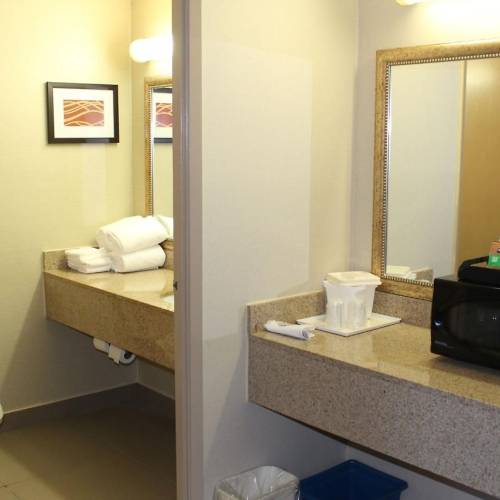 Surrey, CanadáEste agradable hotel está en Surrey. Ubicado a 7. 0 km del centro del pueblo, el establecimiento brinda un fácil acceso a todo lo que este destino tiene para ofrecer. El alojamiento está a 7. 0 km de las principales zonas de ocio. Los visitantes encontrarán el campo de golf más cercano a 4. 0 km del establecimiento. No muy lejos, los viajeros encontrarán enlaces de transporte público desde donde explorar la zona. Los clientes encontrarán el aeropuerto a 37. 0 km. El alojamiento está a 38. 0 km del puerto. Hay un total de 82 dormitorios. Este hotel fue renovado por última vez en 2010. Hay conexión a internet por cable e inalámbrica. Este establecimiento ofrece recepción 24 horas para la comodidad de los huéspedes. Algunos tipos de habitaciones pueden disponer de cuna para los más pequeños. Este alojamiento es accesible y dispone de instalaciones adaptadas para personas de movilidad reducida. Cuenta con 3 dormitorio para personas con discapacidad. Se permite la entrada a mascotas en las instalaciones. Comfort Inn and Suites posee instalaciones para empresas, ideales para las personas que viajan por negocios. Pueden aplicarse tasas adicionales por algunos de estos servicios.
