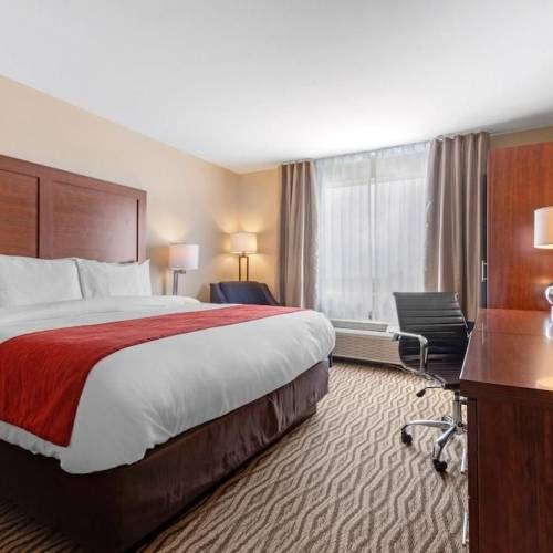 Bowmanville, CanadáSituado en Bowmanville y con El puerto de Cobourg está a 46 km.El Comfort Inn and Suites cuenta con centro de fitness, habitaciones para no fumadores, WiFi gratuita en todas las instalaciones y salón compartido. El establecimiento está a unos 46 km del zoológico de Toronto, a 18 km de la estación de Oshawa GO y a 29 km del centro de convenciones Ajax. Hay recepción 24 horas, centro de negocios y servicio de cambio de divisa. Las habitaciones incluyen escritorio. Todas las habitaciones del Comfort Inn and Suites disponen de baño privado con ducha y artículos de aseo gratuitos, TV de pantalla plana y aire acondicionado. Algunas también cuentan con zona de estar. Todas las habitaciones incluyen nevera. Además, hay piscina cubierta. La estación de Pickering GO y el teatro Capitol se encuentran a 35 km del Comfort Inn and Suites. El aeropuerto Billy Bishop Toronto City es el más cercano y queda a 77 km.