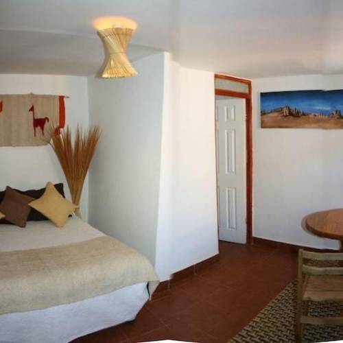 San Pedro de Atacama, ChileEstá situado en el centro histórico de la antigua ciudad oasis de San Pedro de Atacama, en la esquina de la calle principal, Caracoles. Ubicado a dos manzanas de la carretera principal a Calama (el aeropuerto más cercano), en la esquina de la arteria principal del casco antiguo, el hotel está a poca distancia a pie de la plaza principal, el famoso museo arqueológico, el mercado de artesanía, la iglesia original, etc. Las 21 habitaciones encantadoras tipo cabaña, de madera y adobe con terrazas, se distribuyen entre la tranquilidad de una plantación de árboles frutales con una disposición que recuerda a los antiguos asentamientos (poblados). Habitaciones independientes con baño y terraza Un restaurante y bar. Los materiales armonizan y seducen con un diseño arquitectónico innovador Pequeña recepción Para honrar la tradición del respeto a la Pacha Mama (Madre Tierra) y a Inti (Padre Sol), se utiliza energía solar para la iluminación, se ha dejado cada árbol en su sitio y las pasarelas de madera permiten la tradicional irrigación por inundación de la tierra. RM 04-10-10