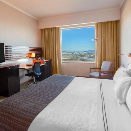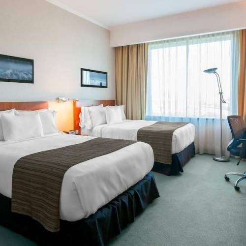 Puerto Montt, ChileUbicado en el mismo edificio que el Mall Paseo Costanera, a orillas del mar, el Holiday Inn Express Puerto Montt está situado en el centro de la ciudad, a 4 minutos caminando de la Plaza de Armas y a 16.5 km del Aeropuerto Internacional El Tepual. Ofrece desayuno buffet y Wi-Fi gratuito.Las habitaciones están equipadas con TV por cable, aire acondicionado, escritorio y cafetera. El baño es privado e incluye secador de pelo.El establecimiento cuenta con gimnasio, centro de negocios, sauna y sala de reuniones. El estacionamiento es cubierto.Todas las mañanas se sirve el desayuno y, tanto en el centro comercial como en las inmediaciones del hotel encontrará una variedad de restaurantes.La propiedad se sitúa a 3 km del Mercado de Angelmó, a 46 km del Parque Nacional Alerce Andino y a 300 m del Teatro Diego Rivera.