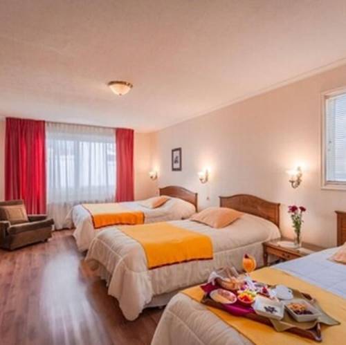 Temuco, ChileEste hotel urbano, adecuado para familias, goza de una ubicación ideal a solo 5 km del centro de Temuco y sus principales oficinas de negocios, la estación de ferrocarril y múltiples restaurantes y tiendas. El hotel de negocios ofrece acceso directo a la principal zona turística, que incluye los lagos de Villarica (a 87 km) y Caburgua. La ciudad de Pucón está a alrededor de 100 minutos en coche y la zona de esquí de Pucón a 112 km. Otros lugares de interés incluyen la playa en Puerto Saavedra (a 110 km), Valdivia (a 120 km), el parque nacional Conguillio (a 148 km) y San Martín de los Andes en Argentina (a 160 km). La estación de autobuses más próxima queda a 5 minutos en coche del hotel urbano y el aeropuerto internacional a solo 15 minutos.Este hotel climatizado fue renovado en 2010 y consta de un total de 62 habitaciones. Además, dispone de vestíbulo con servicio de salida y recepción 24 horas, así como de caja fuerte y ascensor. Los huéspedes pueden beneficiarse del excelente servicio y comodidades, como centro de negocios con instalaciones para conferencias y conexión a Internet WiFi, aparcamiento y garaje, cafetería, sala de desayunos/comedor, quiosco de periódicos y servicio de habitaciones y de lavandería.Las completas habitaciones vienen con cuarto de baño privado con ducha, bañera y secador de pelo, cama doble o extra grande, conexión a Internet de banda ancha, escritorio con teléfono de línea directa, aire acondicionado y calefacción regulables, así como terraza privada. Otras prestaciones incluyen set de plancha, cafetera, minibar, caja fuerte, TV vía satélite y radio.Los huéspedes también pueden hacer ejercicio en el gimnasio o relajarse en la bañera de hidromasaje, sauna o sala de vapor. También hay una piscina al aire libre con tumbonas listas para su uso.Cada mañana se sirve desayuno en forma de bufet.