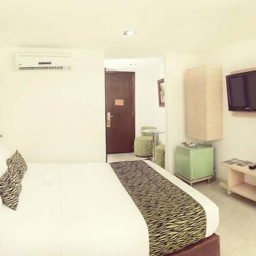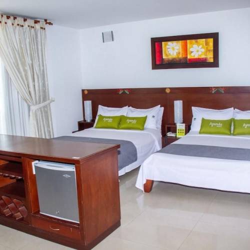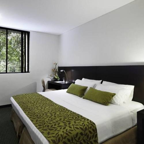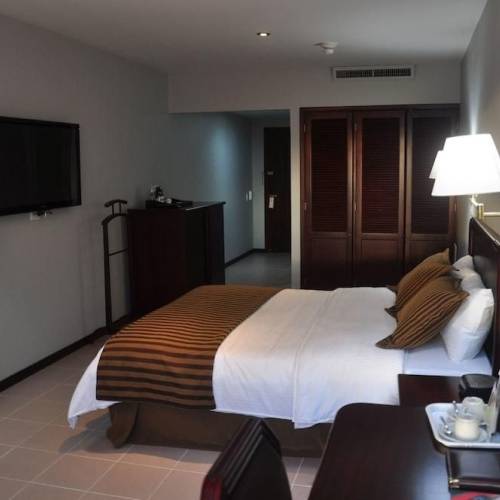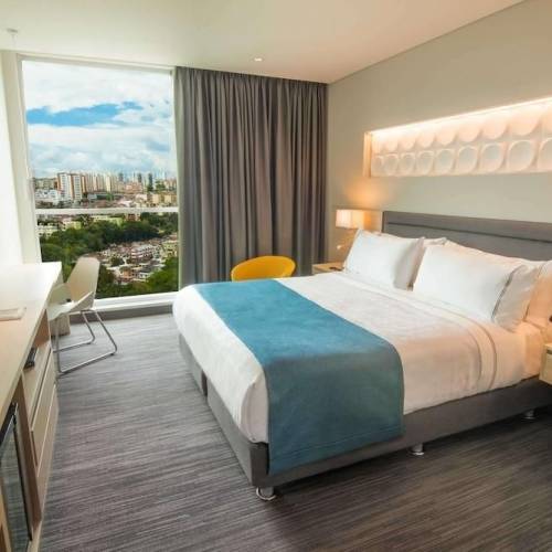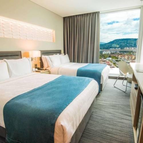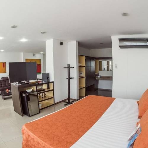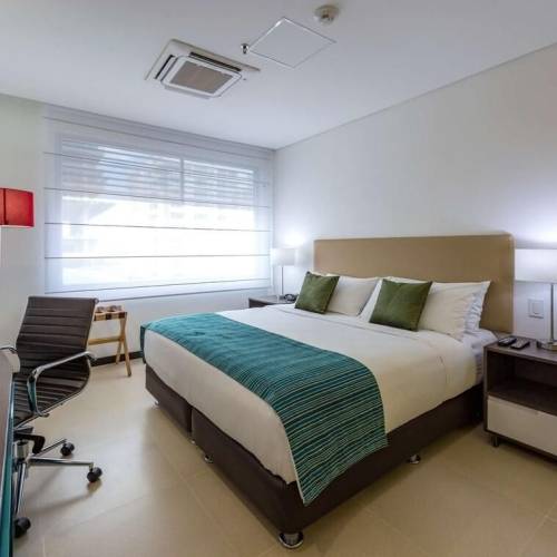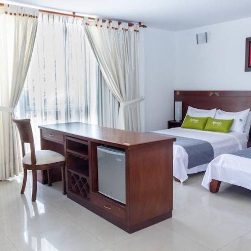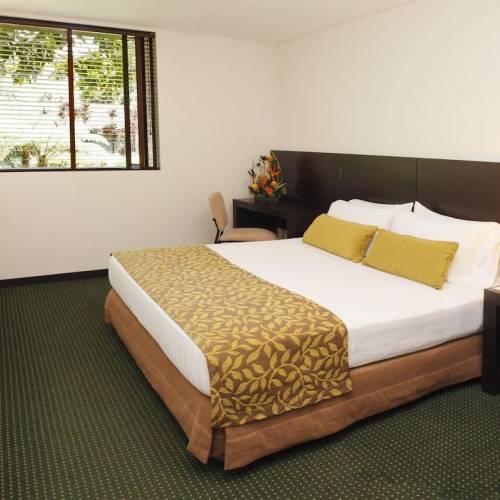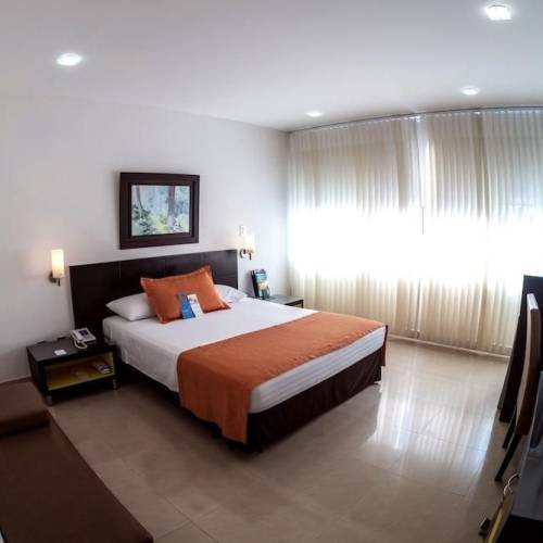 Bucaramanga, ColombiaEl hotel se ubica a 30 minutos del aeropuerto internacional de Palonegro, en medio de una excelente zona residencial y cerca de centros de negocios, oficinas gubernamentales, centros comerciales, bares y restaurantes.El hotel fue renovado en 2010 y es la mayor y más moderna estructura de la ciudad. Cuenta con 14 habitaciones temáticas, con un total de 162 habitaciones. También se ofrece un centro de negocios. Los huéspedes son bienvenidos en el establecimiento climatizado en un vestíbulo con servicio de recepción y salida 24 horas. El establecimiento también cuenta con caja fuerte, servicio de cambio de divisas, ascensor, salón de peluquería, sala de juegos y sala de TV. Los más jóvenes se divertirán en el parque infantil. Los huéspedes pueden comer en la cafetería o restaurante, o disfrutar de su bebida favorita en el bar. Los huéspedes en viaje de negocios apreciarán con seguridad las instalaciones para conferencias. A disposición de los huéspedes también hay conexión a Internet WiFi, servicio de habitaciones y de lavandería, y aparcamiento y garaje.Las habitaciones cuentan con aire acondicionado regulable, TV, sistema de agua caliente central, caja fuerte, escritorio de ejecutivo, conexión a Internet WiFi y cuarto de baño privado con ducha y secador de pelo. Las habitaciones también vienen con cama doble, radio, minibar y nevera.Los huéspedes pueden darse un refrescante chapuzón en la piscina al aire libre y los niños tienen su propia zona de baño. Se sirven refrescos en el chiringuito. El hotel ofrece además terraza, gimnasio, bañera de hidromasaje, sauna, sala de vapor y tratamientos de masajes y spa para garantizar una estancia placentera. Los que quieran jugar al golf durante su estancia pueden dirigirse al Ruitoque Country Club, a unos 20 minutos en transporte público.El hotel dispone de un restaurante. Se sirve desayuno continental de bufet todas las mañanas. El almuerzo y la cena son de bufet, de menú o a la carta.