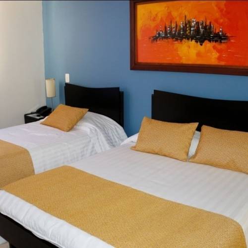 Santiago de Cali, ColombiaHotel Cuarta Avenida se encuentra en Cali. Ofrece wi-fi gratis en zonas comunes y recepción 24 hrs, además de información turística.Necesitas saber: Acceso a unidades por escaleras Se admiten mascotas pequeñas con costo adicionalEl establecimiento posee un restaurante donde podrás degustar las especialidades de la casa. También es posible disfrutar de su snack bar.Entre las comodidades se destacan seguridad 24 hrs, servicio de conserjería y servicio de despertador. Por un costo adicional, la propiedad cuenta con servicio de traslado al aeropuerto y servicio de lavandería.