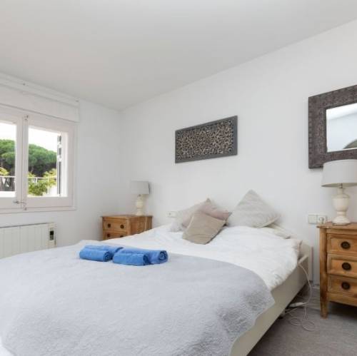 Pals, EspañaCasa adosada de 2 plantas. A 740 m del mar. Comunitario: jardín con césped, jardín natural, piscina (25 x 8 m, 125 - 230 cm de profundidad, Disponible por temporada: 01.Ene. - 31.Oct.). Privado: porche, barbacoa, aparcamiento. Supermercado, restaurante 500 m, playa de arena "Playa Gran de Pals" 999 m. Campo de golf 400 m. Atracciones en los alrededores: Illes Medes 17 m. El propietario no acepta grupos. El propietario no acepta grupos de adolescentes/jóvenes. Vecindario muy sensible a ruidos. Se ruega respetar la tranquilidad y normas de buen comportamiento. "La Reserva X", casa adosada 4 estancias 110 m2 en 2 plantas. Con mobiliario funcional: salón-comedor con TV digital y aire acondicionado. Salida a la terraza-jardín, a la piscina. 1 dorm. con 1 cama doble (180 cm, 200 cm de longitud). 1 dorm. con 1 cama doble (180 cm, 200 cm de longitud). Cocina (horno, lavavajillas, 4 placas de vitrocerámica, tostadora, hervidor de agua eléctrico, microondas, congelador, cafetera eléctrica). Baño/WC. Ningún tipo de calefacción. Planta superior: sala de estar con aire acondicionado. Salida a la terraza. 1 dorm. con 1 cama doble (200 cm, 200 cm de longitud), baño/WC. Terraza-jardín. Muebles de terraza, barbacoa. El alojamiento dispone de: lavadora, plancha, trona, cuna, secador de pelo. Internet (Wifi, gratis). Plaza de aparcamiento n. 6. HUTG-042592
