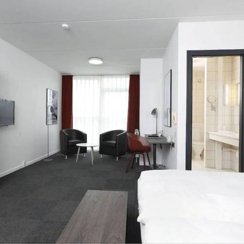 Hirtshals, Dinamarca##Ubicacin del establecimiento \nEn Hirtshals, Montra Skaga Hotel ofrece una esplndida ubicacin en el distrito financiero, a pocos minutos de Acuario y museo Nordsoen Oceanarium y Museo del mar del Norte. Este hotel de 4 estrellas se encuentra muy cerca de Puerto de Hirtshals y Playa de Hirtshals.\n\n##Habitaciones \nTe sentirs como en tu propia casa en una de las 108 habitaciones. Mantn el contacto con los tuyos gracias a la conexin a Internet wifi gratis. El cuarto de bao est provisto de ducha y secador de pelo. Las comodidades incluyen escritorio, una zona de estar separada y telfono.\n\n##Servicios \nDisfruta de tus momentos de ocio con instalaciones como piscina cubierta, sauna y bicicletas de alquiler. Se ofrece adems conexin a Internet wifi gratis, sala de juegos electrnicos o de mesa y tienda de recuerdos o quiosco.\n\n##Para comer \nSi tienes hambre, pasa por el restaurante de este hotel, que ofrece almuerzos o llama al servicio de habitaciones con horario limitado. Apaga la sed con tu bebida favorita en el bar o lounge.\n\n##Servicios de negocios y otros \nTendrs check-in rpido, check-out rpido y servicio de tintorera a tu disposicin. Hay un aparcamiento sin asistencia gratuito disponible.