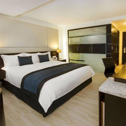 Guayaquil, EcuadorHotel Palace es un hotel independiente con 95 habitaciones que se enorgullece de haber sido escogido por sus clientes entre los mejores en la lista de Hoteles en Guayaquil. Se encuentra ubicado en la zona turística, a 12 minutos del aeropuerto y pasos de distancia de los principales atractivos de la ciudad. Cuenta con ventanas insonorizadas para garantizar el descanso del huésped , desayuno tipo buffet & botella de agua de cortesía y estacionamiento complementario.