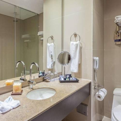 Valledupar, ColombiaSonesta Hotel Valledupar se encuentra en Valledupar. Dispone de wi-fi gratis en zonas comunes, estacionamiento gratis y gimnasio, además de recepción 24 hrs.Necesitas saber: Caja fuerte en la recepción Propiedad libre de humoEl alojamiento sirve diariamente el desayuno, el cual se ofrece en el bar.Las comodidades incluyen centro de negocios, sala de reuniones, computadora para huéspedes y ascensor. Los huéspedes también podrán disfrutar de sombrilla y servicio de conserjería. Por un cargo, la propiedad cuenta con servicio de guarda-equipaje y servicio de lavandería.