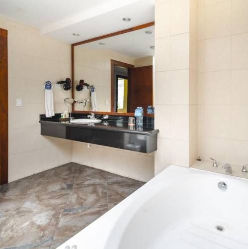Manta, EcuadorA 200 m de la playa El Murciélago, el Oro Verde Manta ofrece habitaciones con vista al mar, 3 piscinas. El hotel está ubicado frente al Mall del Pacífico y a 15 minutos en coche del Aeropuerto Internacional Eloy Alfaro.El alojamiento cuenta con un restaurante donde se ofrece el desayuno continental incluido en la tarifa.La propiedad cuenta con sector de juegos infantiles y sala de juegos para niños. Quien desee ejercitarse podrá utilizar gimnasio, la cancha de tenis o la cancha de volley playero. Para relajarse, el Hotel Oro Verde ofrece hidromasaje y sauna. La recepción está disponible las 24h y el estacionamiento es gratuito.Las habitaciones disponen de Smart TV de 55" con servicio de streaming, Wi-Fi gratuito y aire acondicionado. También ofrecen caja fuerte digital, minibar y baño privado con amenidades y secador de cabello.La propiedad se encuentra a 3 km del Parque del Marisco y a 1h en coche de la Ruta del Spondylus. En coche, se atiende a 1h30 del Parque Nacional Machalilla y del Puerto López, de donde parten las excursiones a la isla de La Plata.