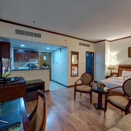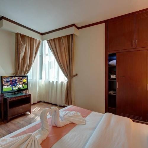 Sharjah, Emiratos Árabes UnidosAl Bustan Tower Hotel Suites está situado en el corazón del distrito comercial de Sharjah, junto al Sharjah Mega Mall, a 15 minutos de los aeropuertos internacionales de Sharjah y Dubai.