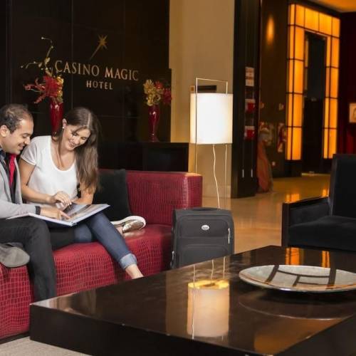 Neuquén, ArgentinaEl Hotel Casino Magic se encuentra en Neuquén. Ofrece casino, conexión Wi-Fi gratuita en las zonas comunes y servicio de spa, así como sauna.Necesitas saber: Acceso e instalaciones para personas de movilidad reducida No se admiten mascotas Caja fuerte en recepciónEl alojamiento sirve un desayuno diario, en el que se ofrece en el bar. Las comodidades incluyen aparcamiento gratuito, gimnasio / centro de fitness, recepción 24 horas y venta de entradas. Los huéspedes también pueden disfrutar de centro de negocios y jardín. Con cargo extra, ofrece guardaequipaje y servicio de lavandería.Ubicado en Neuquén, Hotel Casino Magic se encuentra a 15 minutos a pie de Casino Magic y Volcán Batea Mahuida. Este hotel de categoría superior se encuentra a 1,4 km de Cinco Lagunas y a 2,3 km de Capilla Nuestra Señora de la Asunción.