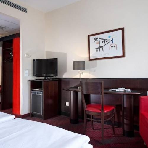 Cottbus, AlemaniaDescripción de la propiedad:Ubicación de la propiedad Si decides alojarte en Sorat Hotel Cottbus, disfrutarás de una céntrica ubicación en Cottbus, a pocos pasos de Torre Spremberger y a 10 minutos a pie de Stadthalle Cottbus. Además, este hotel para familias se encuentra a 1,1 km de Teatro estatal de Cottbus y a 1,8 km de Universidad de Tecnología de Brandenburgo Cottbus-Senftenberg.Número de Habitaciones Disfruta de una agradable estancia en una de las 98 habitaciones con televisión de pantalla plana. La conexión wifi gratis te mantendrá en contacto con los tuyos. Además, podrás disfrutar de canales por satélite. El baño privado con ducha está provisto de artículos de higiene personal gratuitos y secadores de pelo. Entre las comodidades, se incluyen escritorio, cortinas opacas y teléfono.productos de acogida No te pierdas las instalaciones recreativas a tu disposición, que incluyen gimnasio y bicicletas de alquiler. Otros servicios de este hotel incluyen conexión a Internet wifi gratis, servicios de conserjería y tiendas en el alojamiento.Comedor Tienes un restaurante y una cafetería a tu disposición para comer algo, pero si lo prefieres, puedes llamar al servicio de habitaciones con horario limitado de este hotel. Apaga la sed con tu bebida favorita en el bar o lounge. El desayuno bufé, con un coste adicional, se ofrece de lunes a viernes de 06:30 a 10:30, mientras que los fines de semana el horario es de 07:00 a 11:00.Negocios, Otros servicios Tendrás un centro de negocios abierto las 24 horas, check-out exprés y tintorería a tu disposición. Este hotel pone a tu disposición 2 salas de reuniones donde celebrar todo tipo de eventos. Hay un aparcamiento sin asistencia (de pago) disponible.Lugares de interés Las distancias se expresan en números redondos. Torre Spremberger: 0,2 km Altmarkt: 0,3 km Brandenburgisches Apothekenmuseum: 0,3 km Centro comercial Blechen Carré: 0,3 km Lindenpforte Historic Town Gate: 0,3 km Gutshof: 0,4 km Marstall: 0,4 km Dkw. Kunstmuseum Dieselkraftwerk Cottbus: 0,5 km Stadthalle Cottbus: 0,6 km Castle Wall: 0,6 km Parque de Schiller: 0,7 km Cottbus City Museum: 0,7 km Teatro estatal de Cottbus: 0,8 km Universidad de Tecnología de Brandenburgo Cottbus-Senftenberg: 0,8 km Campo de fútbol Stadion der Freundschaft: 1,6 km Idiomas habladosAlemánRusoInglésPolacoEspañolInfórmese antes de ir: Se ofrece alojamiento gratuito a un máximo de 2 menores de hasta 10 años, siempre que ocupen la misma habitación que sus padres o tutores, utilizando las camas existentes. Solo se permite el acceso a las habitaciones a los huéspedes registrados en el hotel. Este alojamiento permite mascotas solo en determinadas habitaciones (se aplican cargos y se pueden encontrar en la sección relativa a las tarifas). Los huéspedes pueden realizar las gestiones para traer sus mascotas poniéndose en contacto directamente con el alojamiento mediante la información de contacto que figura en la confirmación de la reserva. El aparcamiento tiene un límite de altura. Tasas: Desayuno tipo bufé: 18 EUR por adulto y 18 EUR por menor (precio aproximado) Aparcamiento cubierto: 12 EUR por día (entrada y salida libre)Mascotas: 13 EUR por mascota, por nocheNo se cobran tasas por los animales de servicioEl registro de salida tardía tiene un coste adicional (sujeto a disponibilidad) Cama adicional: 38.0 EUR por noche La lista anterior puede estar incompleta. Además, es posible que los impuestos no estén incluidos. Importes sujetos a cambios. instrucciones para el check-in: Puede aplicarse un recargo por cada persona adicional, según la política del alojamiento.A tu llegada, pueden pedirte un documento de identidad oficial con foto y una tarjeta de crédito, o un depósito en efectivo, para cubrir los gastos imprevistos.No se garantizan las solicitudes especiales, que están sujetas a disponibilidad en el momento de la llegada y pueden suponer un recargo adicional.Para reservar el aparcamiento en las instalaciones, ponte en conta