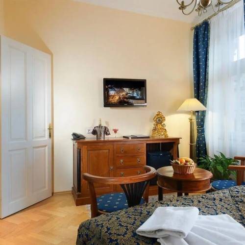 Karlovy Vary, República ChecaUn hotel maravilloso «Promenáda Romantic & Wellness Hotel» está situado en la ciudad de Karlovy Vary. Este hotel está situado cerca del pintoresco centro de la ciudad. En todo el hotel hay acceso a Internet gratuito. Se puede practicar deporte en una sala de fitness que dispone de máquinas de gimnasio modernas. Después de practicar deporte, se puede relajarse en el sauna. En el hotel hay una piscina. En cualquier momento se puede usar el servicio a la habitación para pedir comida o servicios adicionales. Por favor, no olvides que en este hotel está prohibido fumar.