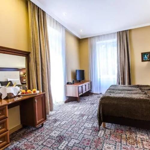 Karlovy Vary, República ChecaSofisticado pero muy cómodo hotel «Savoy Westend Hotel» se encuentra en Karlovy Vary. Este hotel se encuentra a corta distancia del centro de la ciudad. Puedes recorrer a pie el área residencial de el hotel. Lugares cercanos: Iglesia ortodoxa de San Pedro y San Pablo, Dvorzhakovy gardens y Lazne III. Disfruta la noche en este bar agradable. Prueba la cocina local y toma un descanso en el restaurante. Si no puedes vivir sin café, deléitate en la cafetería. Hay disponible wifi gratuito en las instalaciones. Solicita más información al hacer check-in. Si viajas en auto, puedes usar el estacionamiento. Además, para huéspedes de el hotel se ofrecen los servicios siguientes: una sala de masajes, un sauna, un baño de vapor, un centro de spa y un doctor. Los huéspedes que amen los deportes podrán disfrutar un centro deportivo y una sala de ejercicios. Para los fanáticos de los deportes de invierno, se ofrecen los servicios siguientes: un centro de esquí, una escuela de esquí y un servicio de traslado al centro de esquí. No te aburrirás nunca en el hotel porque encontrarás una biblioteca, un club de bowling, un área de pícnic y un área con parrillas. A los fanáticos de la natación les encantará contar con una piscina y una piscina cubierta. Puedes coordinar una reunión de negocios, una reunión de la junta o incluso una entrevista laboral, ya que se ofrece un salón de conferencias. Los niños estarán felices, ya que hay una sala de juegos para ellos. ¿Quieres salir de excursión? Consulta al sector de asistencia turística del hotel. Puedes salir de viaje con tu mascota. Se aceptan mascotas. El personal del hotel puede reservarte un traslado. Accesibilidad: hay elevador/ascensor. Hay más servicios disponibles para los huéspedes del hotel. Por ejemplo, una sala de lavado, servicio de limpieza en seco, planchado, prensa, alquiler de autos, una caja de seguridad y un conserje. El personal del hotel estará encantado de hablarte en inglés, alemán y ruso. En la habitación, encontrarás una TV, un minibar y batas. Ten en cuenta que no todas las habitaciones incluyen todos los servicios mencionados.