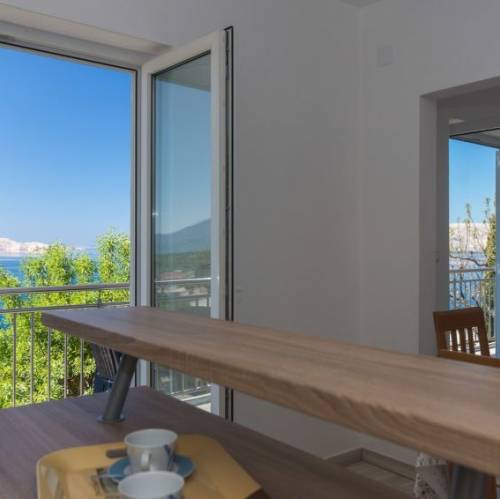 Senj, CroaciaCasa de tres viviendas. A 1 km del centro de Senj, lugar soleado, elevado, a 300 m del mar, a 300 m de la playa. En el inmueble: acceso a internet. Aparcamiento en el mismo terreno. Supermercado 900 m, restaurante 1 km, café 500 m, playa de gravilla 300 m. "Elena (SNJ115)", apartamento de 2 estancias 45 m2 en el 1° piso. Salón-comedor con 1 sofá-cama doble (140 cm, 200 cm de longitud), TV satélite y aire acondicionado. Salida al balcón. 1 dorm. con 1 cama de matrimonio (160 cm, 200 cm de longitud). Cocina abierta (2 fogones, tostadora, hervidor de agua eléctrico, microondas, cafetera eléctrica). Ducha/WC. Aire caliente. Balcón 9 m2, terraza 11 m2, cubierta. Muebles de terraza, muebles de balcón. Vista bonita al mar. El alojamiento dispone de: Internet (Wifi, gratis).