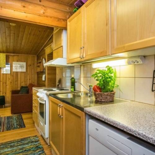 Kuusamo, Finlandia25 km al norte de Kuusamo, Ruka a 8 km, el lago Kuontijärvi a 350 m. Apartamento de troncos en casa adosada, construida en 1991, dormitorio 1: cama doble, dormitorio 2: litera (cama inferior 120 cm), salón: sofá convertible (para dos personas), buhardilla (8 m²): 2 colchones. Combinada cocina-salón. Sauna eléctrica. Casa adosada situada cerca del lago Kuontijärvi. Información adicional: la cabaña fue renovada en 2011. Otras distancias: Parque Nacional Oulanka / sendero Pieni Karhunkierros a 27 km, colina Riisitunturi a 33 km. Reservas empiezan a las 16.00 y terminan a las 12.00 (también en las reservas de fines de semana).
