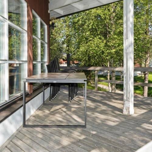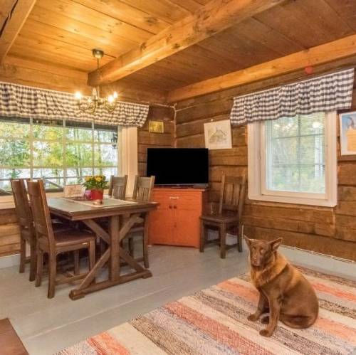 Kuusamo, Finlandia26 km al norte de Kuusamo, Ruka a 5.6 km, lago Rukajärvi a 150 m, somero, playa arenosa (de uso compartido con 2 cabañas más), bote de remos. Cabaña de troncos construida en 1988, dormitorio 1: cama doble, dormitorio 2: litera, buhardilla: 2 camas, nicho (con ventana y puerta) en la buhardilla: 1 cama, salón, cocina, sauna eléctrica. Planta baja 56 m², buhardilla 26 m² (menos de 160 cm de alta, techo parcialmente inclinado). La cabaña se encuentra en pendiente y las escaleras llevan a la puerta principal (vea las fotos). Entre la cabaña y el lago está la carretera Tahkolanrannantie. Equipo adicional: barrera de seguridad infantil en la buhardilla, cobijo de parrilla. Información adicional: sendero de esquí conectado (300 m de longitud) con la red pública de senderos de esquí a 30 m de la cabaña. La casa del propietario está a unos 70 m de distancia, hay un garaje entre la cabaña y la casa. Atención. Mascotas están bienvenidas, tarifa adicional de 30 €/mascota. Reservas empiezan a las 16.00 y terminan a las 12.00 (también en las reservas de fines de semana).