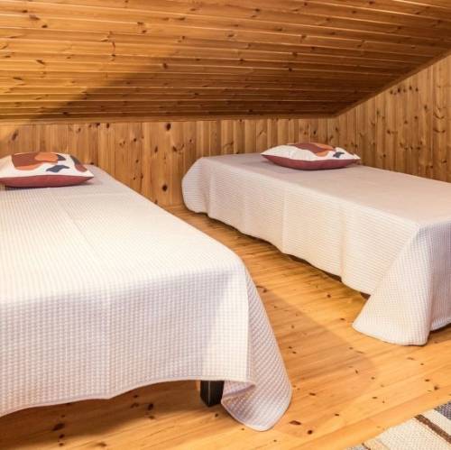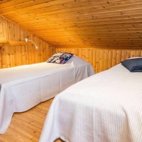 Kuusamo, Finlandia14 km al norte de Kuusamo, Ruka a 15 km, lago Pikku-Nissijärvi a 30 m, playa arenosa, playa de fondo lodoso, muelle. Cabaña de troncos, construida en 1992, dormitorio 1: cama doble, dormitorio 2: cama doble, buhardilla (30 m², altura máxima 185 cm): 3 camas + litera para 2 personas, salón, cocina, sauna eléctrica. Cabaña de troncos con buhardilla, situada en la orilla norte del lago Pikku-Nissijärvi. Equipo adicional: cobijo de parrilla, bote de remos, barrera de seguridad infantil en la buhardilla. Otras distancias: Parque Nacional Oulanka / sendero Pieni Karhunkierros a 22 km, Parque Nacional Riisitunturi a 43 km. Reservas empiezan a las 16.00 y terminan a las 12.00 (también en las reservas de fines de semana).
