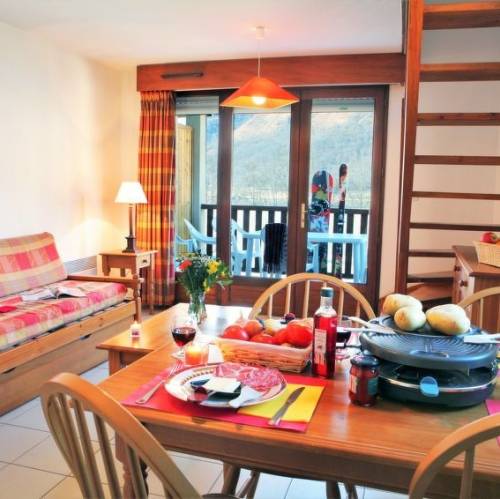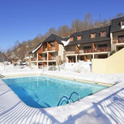 Loudenvielle, FranciaResidencia "La Soulane", 1'000 m s.n. m.. 68 apartamentos en la residencia. En el aldea Aranvielle, a 1 km del centro de Loudenvielle, a 26 km del centro de Bagnères-de-Luchon, a 80 km del centro de Lourdes/Tarbes, a orillas del lago, a 8 km de las pistas de esquì. En el campo. Comunitario: piscina climatizada (120 - 180 cm de profundidad, Disponible por temporada: 01.May. - 30.Sep.). En el complejo: recepción, Wifi, sauna, gimnasio, lavadora, secadora (uso comunitario, extra). Desayuno. Aparcamiento (número limitado). Tienda 1 km. Pistas de esquí 8 km, escuela de esquí 8 km. Atracciones en los alrededores: Centre thermo-ludique Balnéa 1 km. Zonas de esquí populares fácilmente accesibles: Télécabine Skyvall (Peyragudes) 800 m, Val Louron 8 km, Peyragudes 11 km. Lagos conocidos fácilmente accesibles: Lac de Génos. A tener en cuenta: La foto corresponde a una de las viviendas. Los alojamientos pueden diferir en la superficie habitable, la distribución de las estancias, el equipamiento y el mobiliario. "La Soulane", apartamento de 3 estancias 40 m2. Salón-dormitorio con 1 sofá-cama doble (2 x 90 cm, 190 cm de longitud), mesa de comedor y alquiler de TV opcional (pantalla plana). Salida al balcón, a la terraza. Rincón-cocina (lavavajillas, 4 placas de vitrocerámica, tostadora, hervidor de agua eléctrico, microondas, cafetera eléctrica). Planta superior: 1 dorm. con 1 cama de matrimonio (140 cm, 190 cm de longitud). 1 dorm. con 2 camas (90 cm, 190 cm de longitud). WC separado, baño o ducha. Calefacción eléctrica. Balcón pequeño o terraza pequeña. Muebles de balcón. Vista al lago y a las montañas. El alojamiento dispone de: plancha, trona (extra). Internet (Wifi, extra). A tener en cuenta: apartamento para no fumadores. Permitido máximo 1 mascota / perro. Detector de humo. El alojamiento es una casa tipo ejemplo o un apartamento tipo ejemplo.